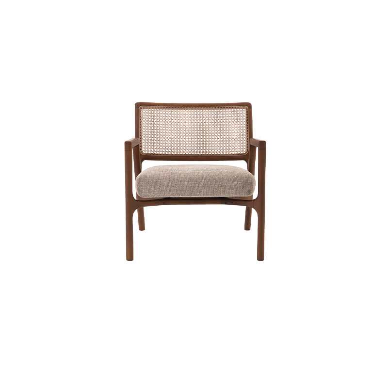 Assento estofado em tecido ou couro.