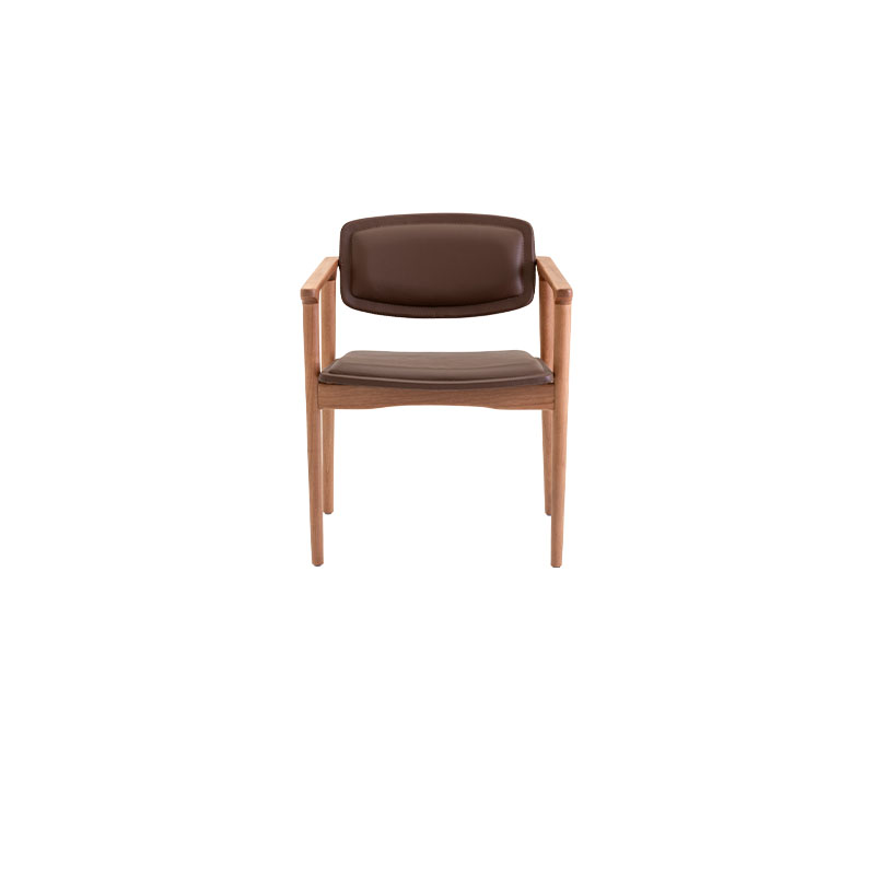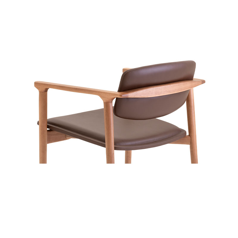 Assento e encosto em couro ou tecido.