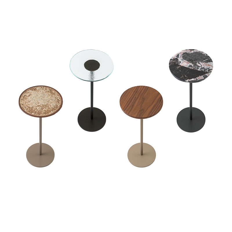 Tampo em lâmina de madeira, laca, cerâmica, vidro texturizado ou mármore.